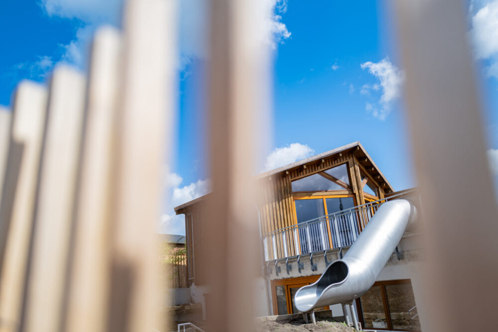 Das Eschenhaus ist eingebettet in einen naturnahen Garten, der viel Platz für Bewegung, Spiel und Entdeckerfreude der Kinder bietet.